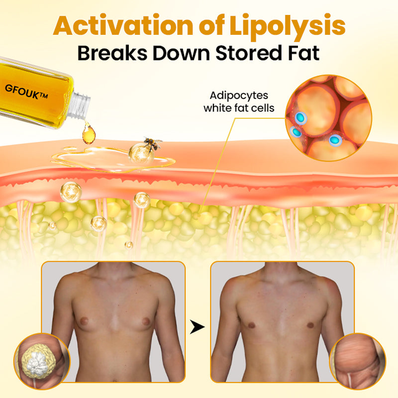 GFOUK™ ThermoFirm utilizes the power of lipolysis to effectively target and break down stubborn fat deposits in the chest area. The unique bioactive compounds in bee venom, particularly melittin, activate the body’s natural fat-burning processes, addressing the excess fat that contributes to gynecomastia. This results in a noticeable reduction in male breast tissue and a firmer, more masculine chest contour.